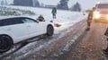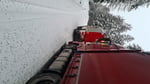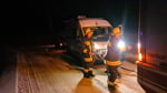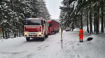 Ein voll beladener ausländischer Sattelzug war aufgrund der winterlichen Straßenverhältnisse ins rutschen gekommen und blockierte die ganze Straße.