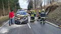 Ein PKW kam von der Straße ab und blieb im Straßengraben auf der Böschung hängen.