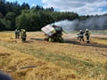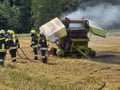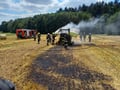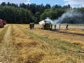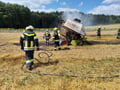 Beim Eintreffen am Einsatzort war eine Rundballenpresse in Brand. Sofort wurde mit der Brandbekämpfung mittels HD-Rohr unter schwerem Atemschutz begonnen.